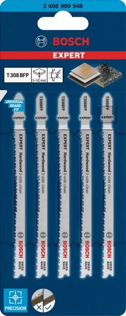 Bosch 2608900545 EXPERT Decoupeerzaagblad T308BF 2 – Hardwood – 2-side Clean (5st)