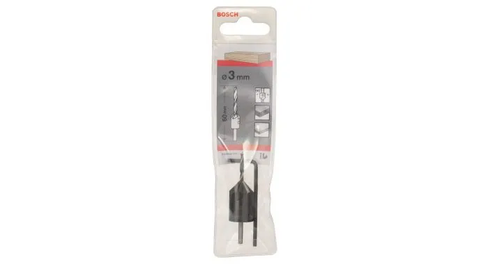 Bosch houtspiraalboor met verzinkboor. Geschikt voor hard en zacht hout, geplastificeerde en niet-geplastificeerde spaanplaat, multiplex. Boren en verzinken in één bewerking. Verzinkboor ook te gebruiken als diepteaanslag. Cilindrisch, met 2-voudige spiraal.