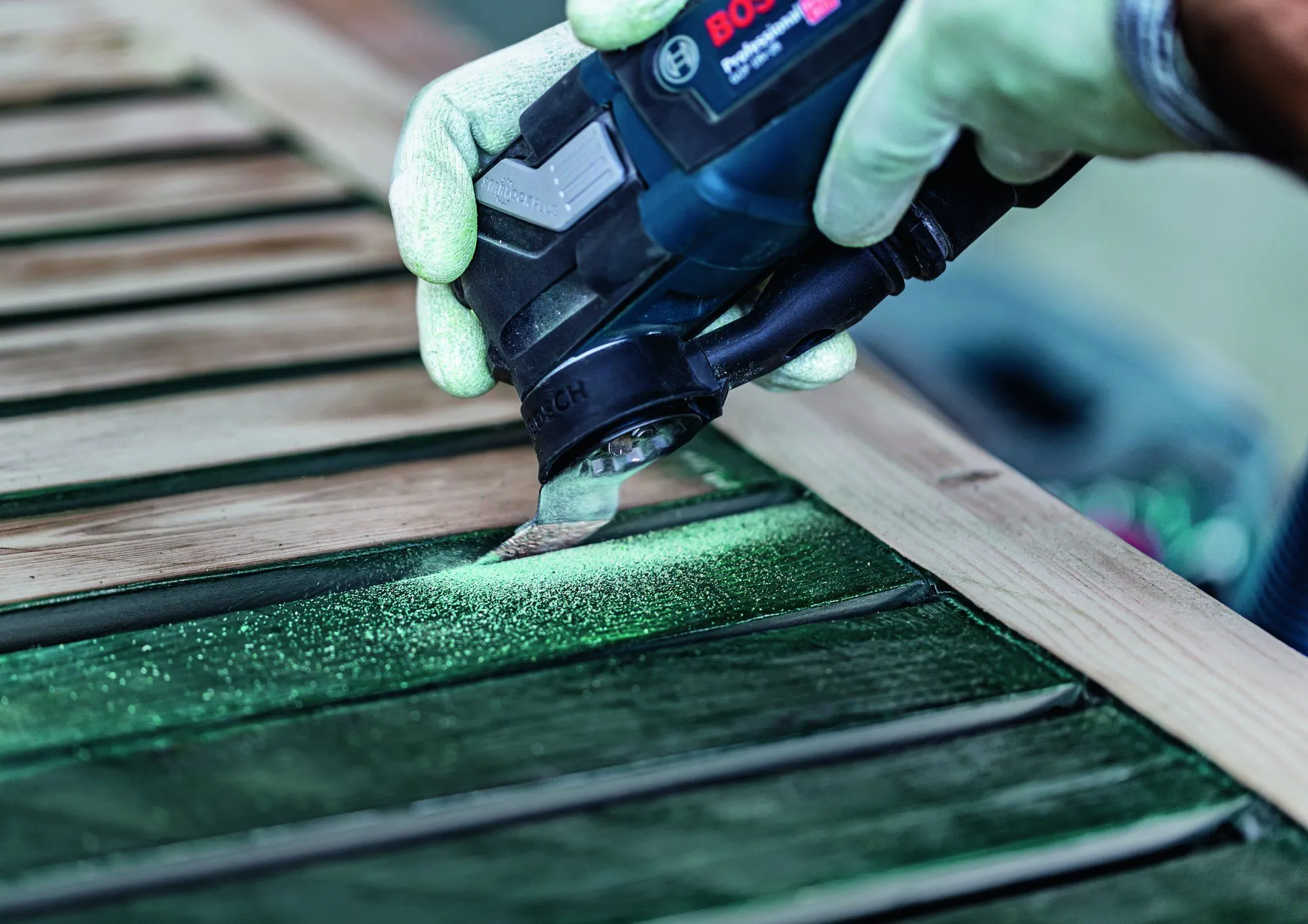 Krappe openingen in terrasplanken, luiken of oude trappen zijn erg moeilijk met de hand te schuren zijn, meestal krijg je een splinter in je vingers. Met de Expert Sanding Finger is dit soort schuurwerk eenvoudig: het dunne, spitse zaagblad past in de kleinste ruimtes en schuurt snel en effectief met zijn hoogwaardige hardmetalen korrel.