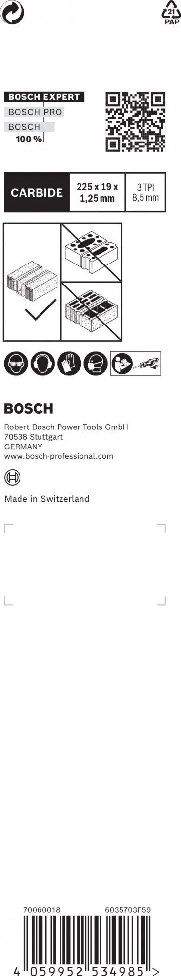 Het Bosch Expert ‘Aerated Concrete’ reciprozaagblad is een gespecialiseerd zaagblad voor cellenbetonblokken zoals Ytong en Siporex. Bosch Carbide Technology betekent dat de tanden deze materialen dag in dag uit kunnen blijven zagen.