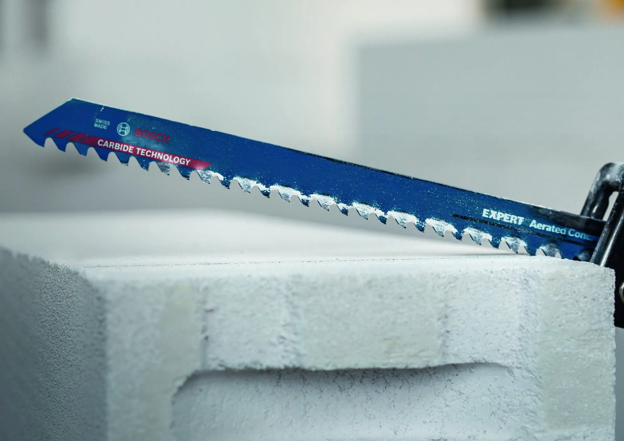 Vóór de hardmetalen reciprozaagbladen was gemakkelijk zagen van poreuze betonblokken met een reciprozaag ondenkbaar. Maar nu is er het Bosch Expert ‘Aerated Concrete’ reciprozaagblad.