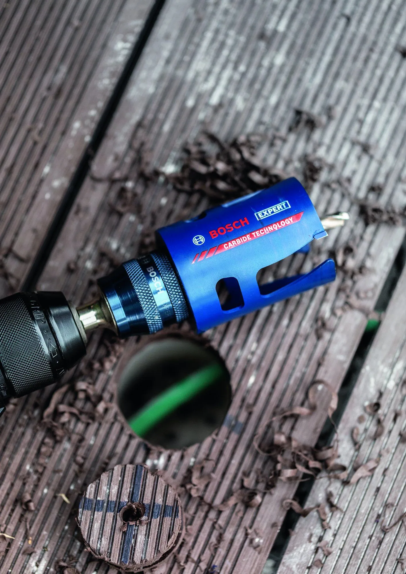 Met slechts een paar enorme hardmetalen tanden op zijn stalen lichaam levert de Expert Construction Material altijd een goed gat. De grote sleuven zijn geoptimaliseerd voor snelle spaanderverwijdering. De boor gaat snel door alles heen, van baksteen tot hout en spaanplaten. Bosch Carbide Technology is een optimale mix van de hardste metalen en zorgt voor een extreem lange levensduur.